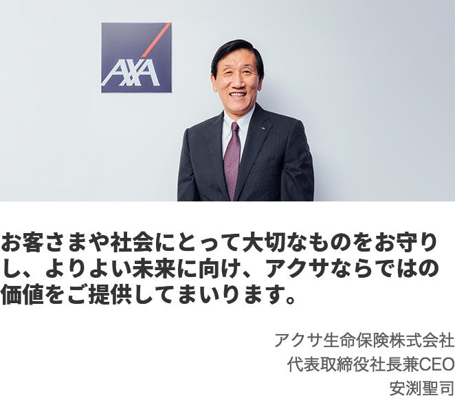 アクサ生命は単なるリスクへの対処ではなく、お客さまの人生そのものを守ること、安心でよりよい人生の実現に貢献するための保険商品・サービスの提供を行っています。また、お客さまのニーズにお応えす るため、「これまで」を再定義して、「これから」に必要な保障をお届けしていきます。