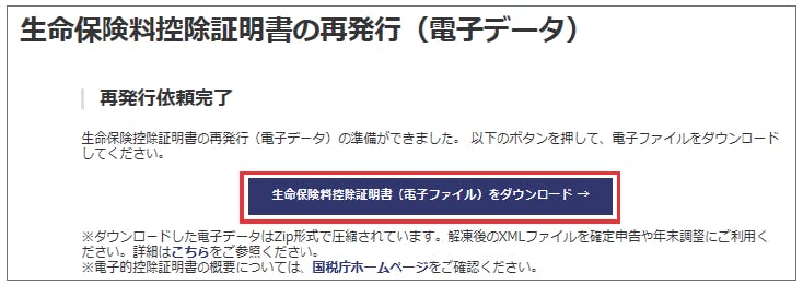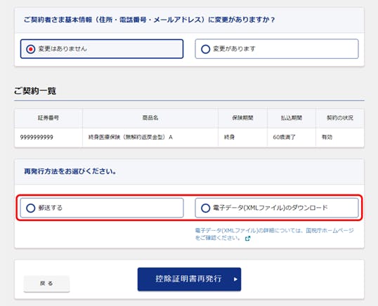 生命保険料控除証明書の電子データ(XMLファイル)の即時発行・再発行ができます。