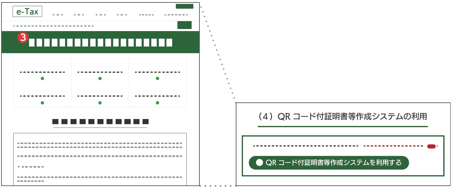 下記のご利用方法(イラスト)は全てイメージで、実際の画面とは異なります。詳しくは国税庁HP「QRコード付証明書等作成システムについて」の掲載情報や注意事項に従ってご利用ください。また、問い合わせ等は各ページに記載の方法で行ってください。
