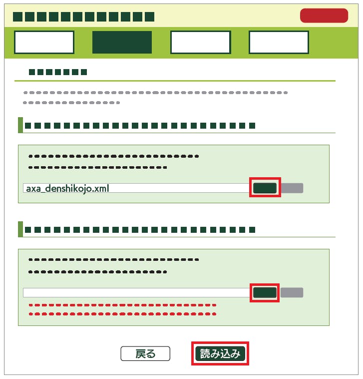 上記の「電子データとして提出する場合(お手続き①)のご利用方法」の通り、事前にMyAXAから電子データ(XMLファイル)をダウンロードしてください。